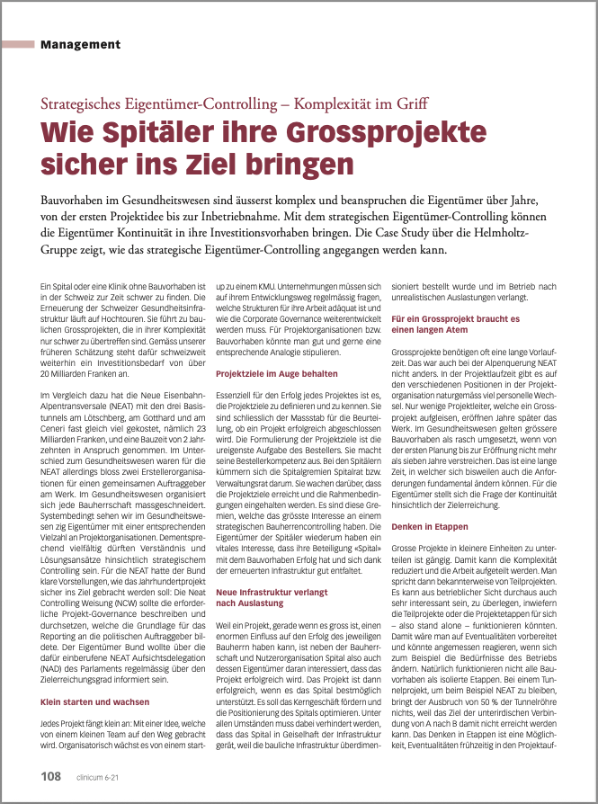 Wie Spitäler ihre Grossprojektesicher ins Ziel bringen